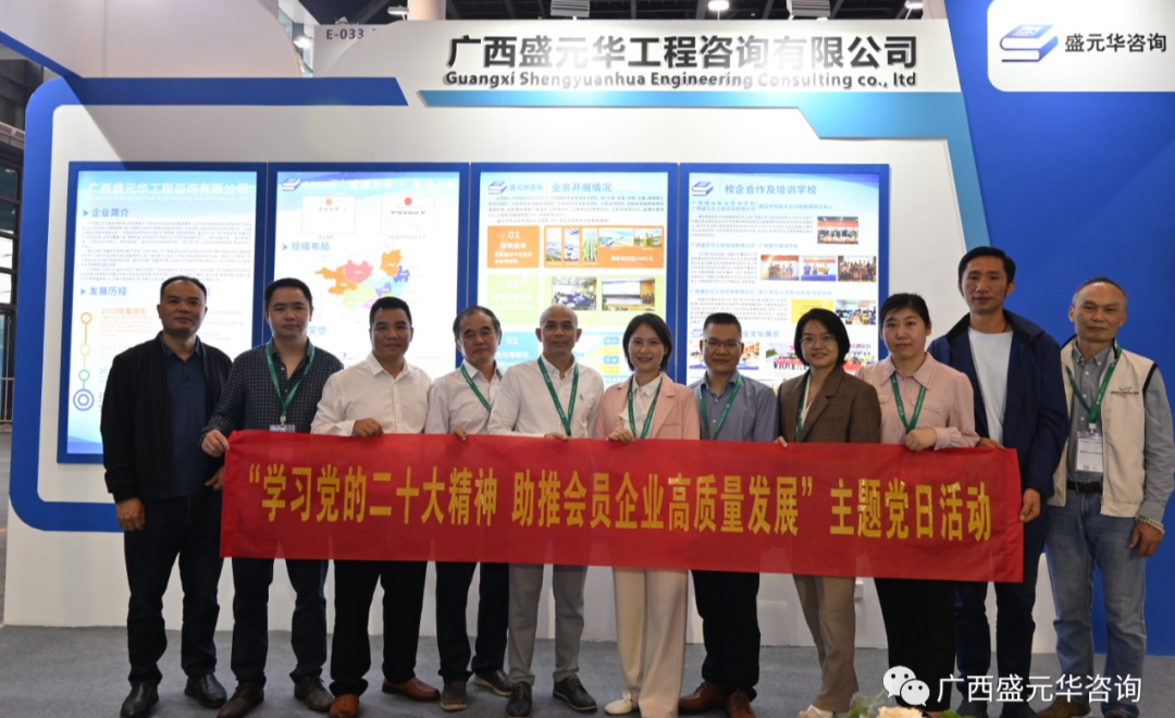 公司領(lǐng)導(dǎo)及公司黨支部成員與廣西建設(shè)工程造價(jià)協(xié)會(huì)黨支部在觀展期間進(jìn)行了黨建活動(dòng)交流并集體合影