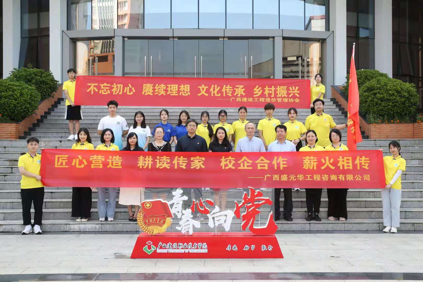 7月26日上午,廣西建設職業(yè)技術(shù)學院管理工程系團總支“匠心營造·耕讀傳家”古建筑文化傳承實踐團再次出征,廣西盛元華工程咨詢有限公司(已下簡稱我公司)副總經(jīng)理黃藝、BIM中心負責人覃永松作為校企合作企業(yè)方代表,與廣西建設工程造價管理協(xié)會黨支部書記王燕蓉、辦公室主任楊智、廣西建設職業(yè)技術(shù)學院管理工程系羅輝副主任共同出席出征儀式。本次實踐團由管理工程系周慧玲、郭海棠、封炫妃、甘麒燕老師帶隊。