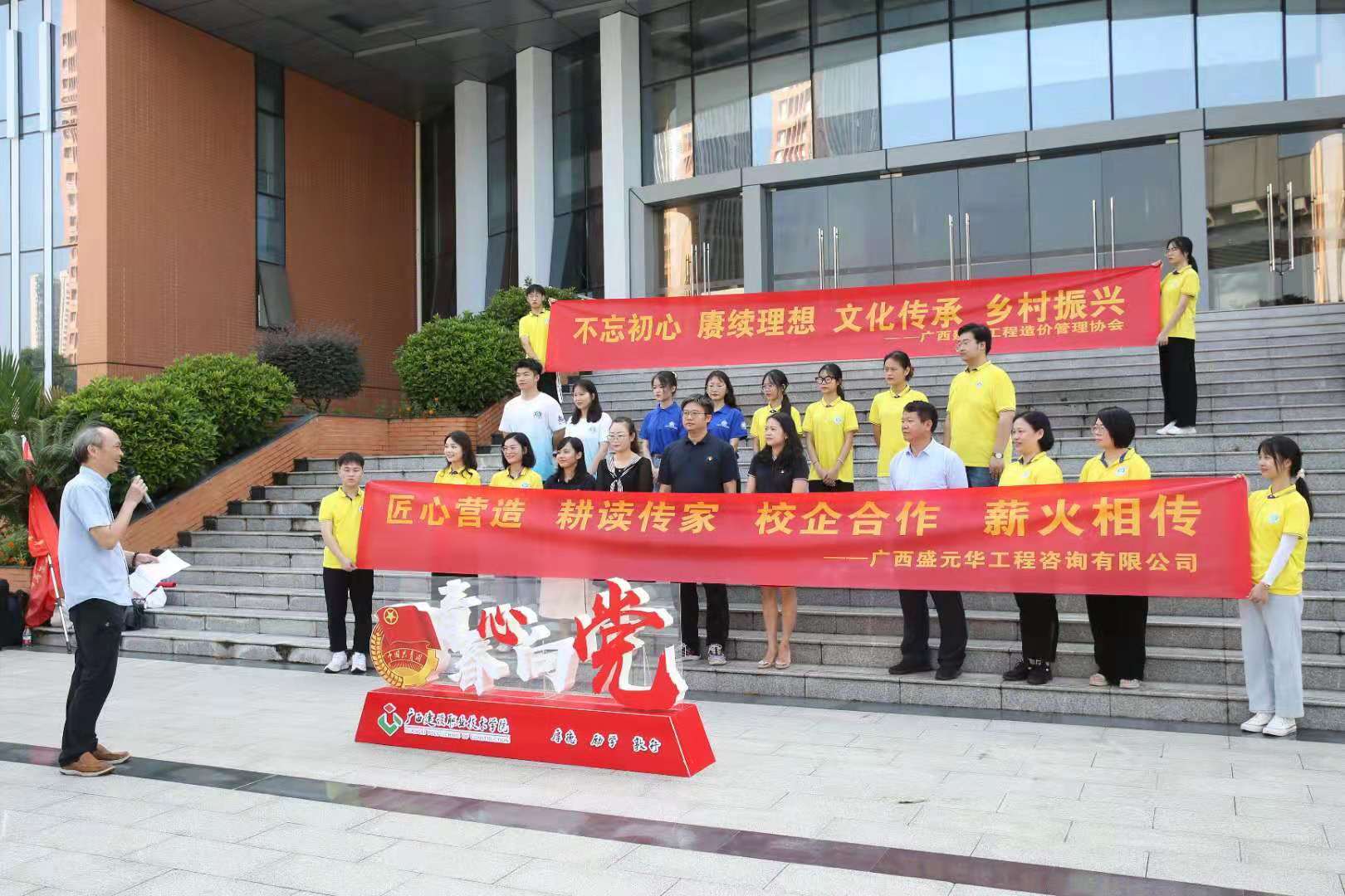 黃藝副總經(jīng)理在出征儀式上講話 據(jù)悉,我公司去年與廣西建設職業(yè)技術(shù)學院校企合作的“三下鄉(xiāng)”社會實踐活動收到了良好的社會效果。再次出征啟程,依托學?!叭恕笔痉断灯脚_,“雙高”院校建設工程管理專業(yè)群建設,融合互聯(lián)網(wǎng)+項目打造,由廣西建設職業(yè)技術(shù)學院管理工程系、馬克思主義學院聯(lián)手組織,得到我公司與廣西建設工程造價管理協(xié)會全程指導,既加強了校企合作聯(lián)系,又體現(xiàn)了行業(yè)企業(yè)的社會擔當,更借助實踐檢驗育人實效,實現(xiàn)了學校、行業(yè)、企業(yè)“三線交融”,匯聚校行企力量,助力鄉(xiāng)村振興。